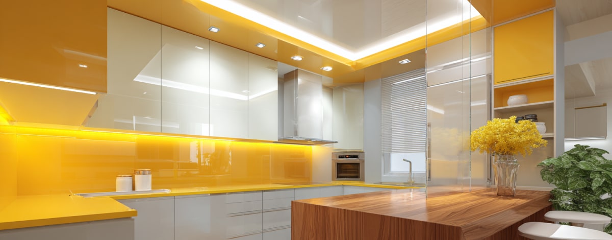 Для подчеркивания декоративных элементов и украшения кухонного пространства устанавливают дополнительные источники света. Для создания атмосферного освещения вечером или в ночное время добавляют диммеры.