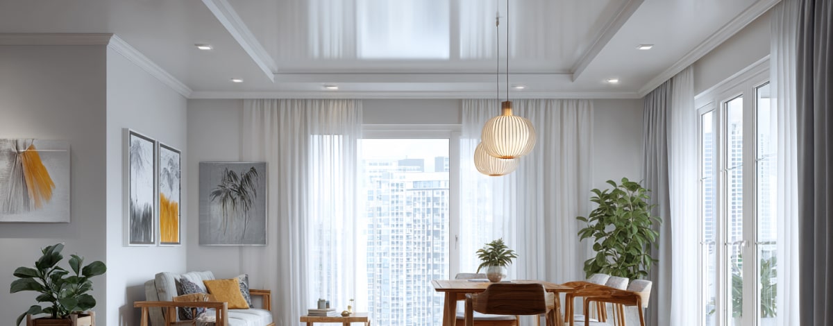 На натяжных потолках устанавливают различные типы осветительных приборов. Учитывают дизайн, функциональные требования, характеристики помещения.